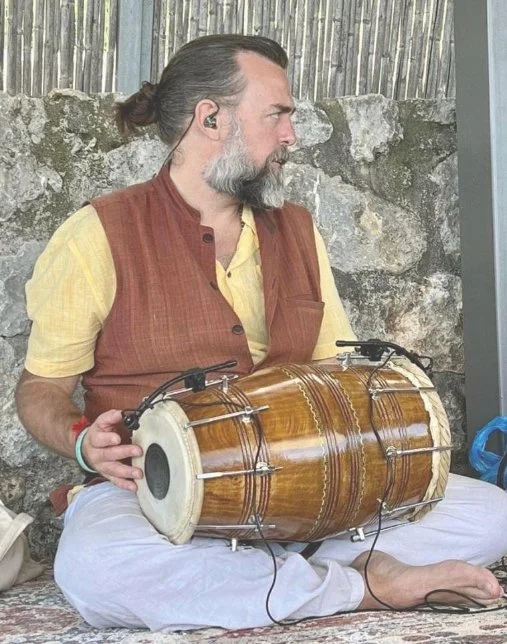 Ananda Rasa (the bliss of Divine rapture) Kirtan is led by vocalist and multi-instrumentalist David Estes who is currently based in the San Francisco Bay Area. David grew up in India and spent several years completely immersed in the practices of kirtan, sanskrit text chanting, meditation, and service as a full-time resident in daily ashram life. Ananda Rasa Kirtan is rooted in traditional Sanskrit chants and mantras sung to original Indian raga melody compositions and explores the ecstatic and mystical moods of Bhakti in call and response chanting with the audience.